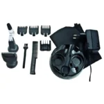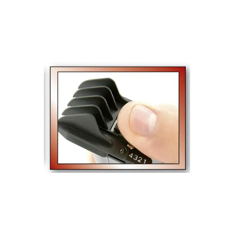 • Kartu su kantavimo mašinėle komplektuojami priedai: 6 pozicijų reguliuojamos šukos 3-16 mm ilgiams suformuoti, 3 šukos 1.5, 3 ir 4.5 mm ilgio barzdos plaukelių formavimui.