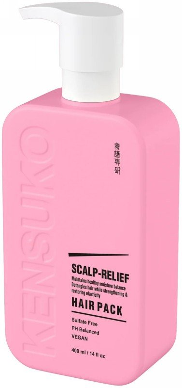 KENSUKO „Scalp-Relief Hair Pack – tai plaukų ir galvos odos priežiūrai skirta kaukė, pritaikyta reguliariam naudojimui. Jos formulė gali padėti palaikyti subalansuotą drėgmės pusiausvyrą, suteikti drėkinimo pojūtį tiek galvos odai, tiek plaukams, palengvinti plaukų iššukavimą ir padėti išlaikyti elastingą, glotnią plaukų išvaizdą.