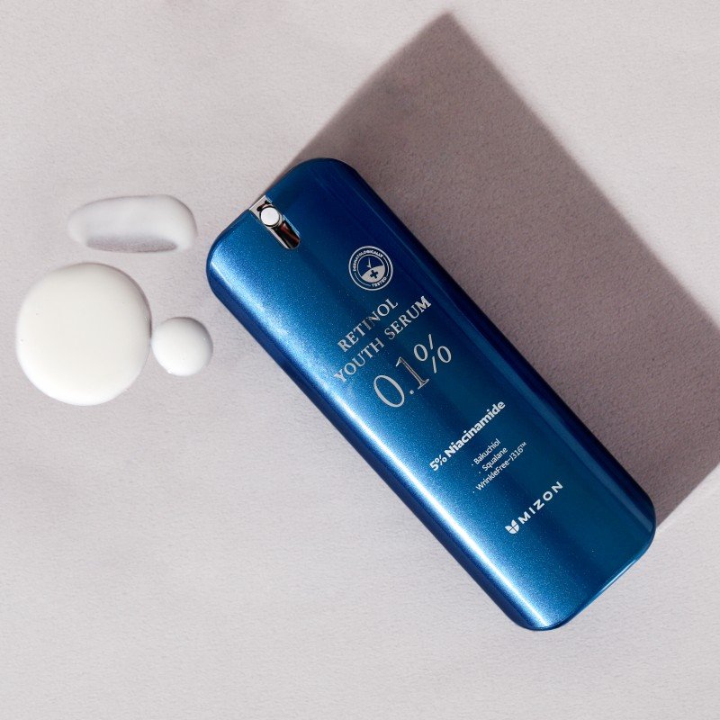 MIZON „0.1% Retinol Youth Serum“ švelnios sudėties veido priežiūros priemonė su 0,1% retinolio, bakučioliu ir niacinamidu skirta kasdienei odos priežiūrai. Formulėje esantis retinolis (vitaminas A) padeda palaikyti tolygią odos būklę, o niacinamidas žinomas kaip ingredientas, naudojamas odos spalvos vienodumui puoselėti. Bakučiolis – iš augalinės kilmės šaltinio gaunamas komponentas – dažnai pasirenkamas odos priežiūros priemonėse dėl savo švelnių savybių. Sudėtį papildo patentuotos sudedamosios dalys, tokios kaip Wrinklefree-J316™ kompleksas ir peptidų deriniai, kurie padeda palaikyti odos drėgmę ir elastingumą. Naudojama reguliariai, priemonė padeda išlaikyti lygesnės tekstūros, komfortiškos būklės odą. Tinka įvairių tipų, į papilkėjimą ar sausumą linkusiai odai.